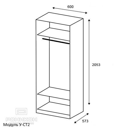 3. модуля шириной 600 мм с антресольной полкой, нижней полкой и штангой для верхней одежды (У-СТ2).