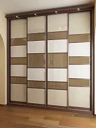 Встроенный шкаф-купе по индивидуальному проекту подходит для помещения площадью 15 квадратных метров. В дизайне преобладает Стекло в пленке, использованы плитные материалы ЛДСП 16мм в кромке 2мм по видимой части класса Е1, установлен механизм Hettich, нижнеопорная система купе.