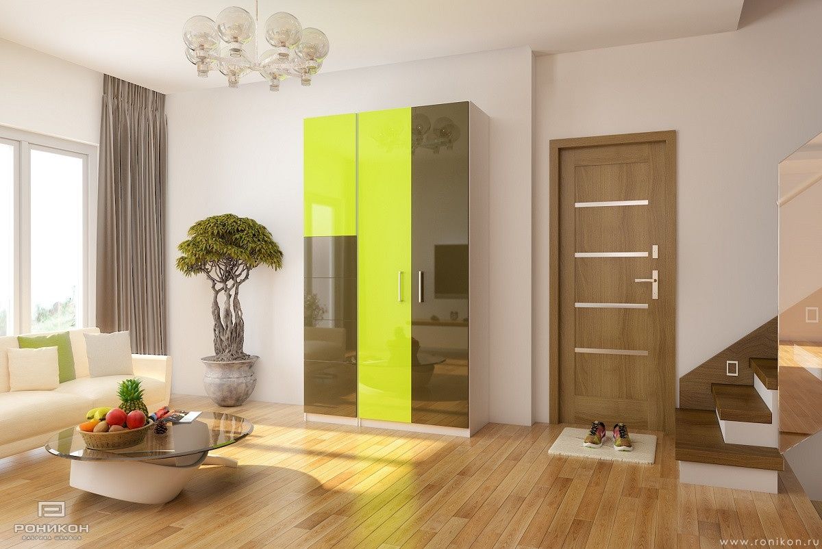 Распашной шкаф нестандартных размеров подходит для любой комнаты квартиры. В дизайне мебели преобладает Цитрусовый жёлтый U131 ST9, Чёрный U999 ST2, использованы безопасные плитные материалы класса Е1 ЛДСП 16мм в кромке 2мм по видимой части, применена фурнитура петли Blum с доводчиком.