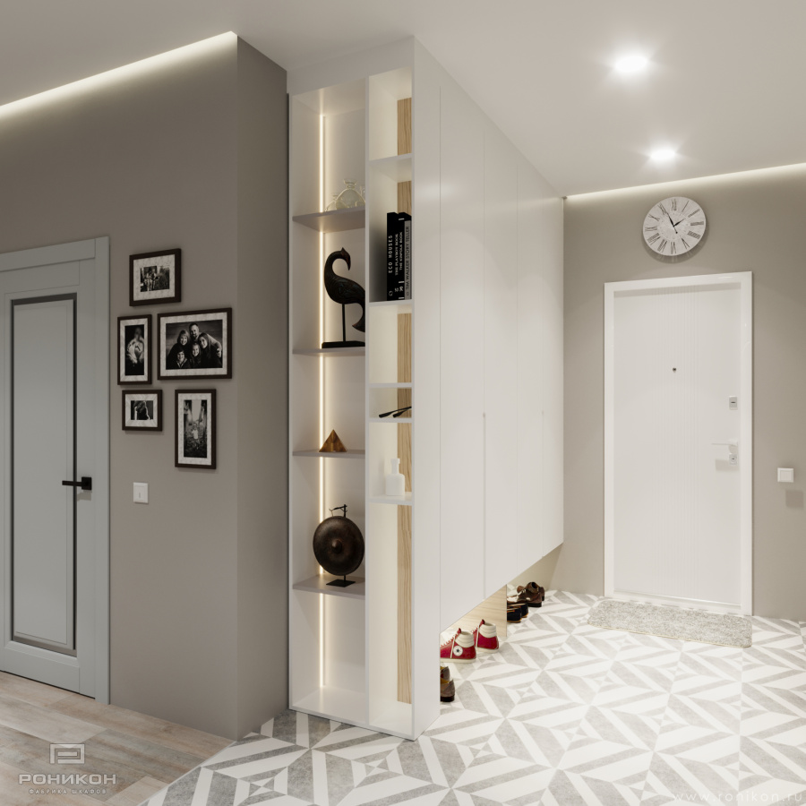 Открытая ниша для обуви: Удобная ниша для обуви позволяет быстро и легко организовать хранение обуви, что делает шкаф практичным и функциональным.