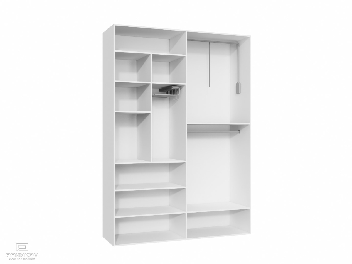 Полки: Внутри шкафа расположены полки, которые позволяют удобно организовать хранение вещей. Они выполнены из качественного белого ЛДСП и обеспечивают удобство хранения.