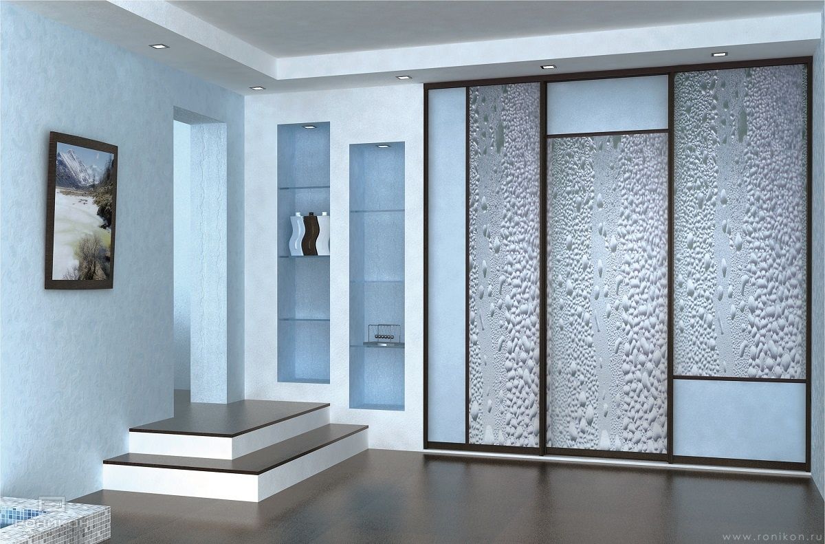 Встроенный шкаф-купе трехстворчатый в профиле бронза стекло в пленке с фотопечатью по проекту на заказ подходит для помещения площадью 20 квадратных метров. В дизайне мебели преобладает Egger Орех Пацифик, использованы безопасные плитные материалы класса Е1 ЛДСП 16мм в кромке 2мм по видимой части, применена фурнитура Hettich, нижнеопорная система купе.