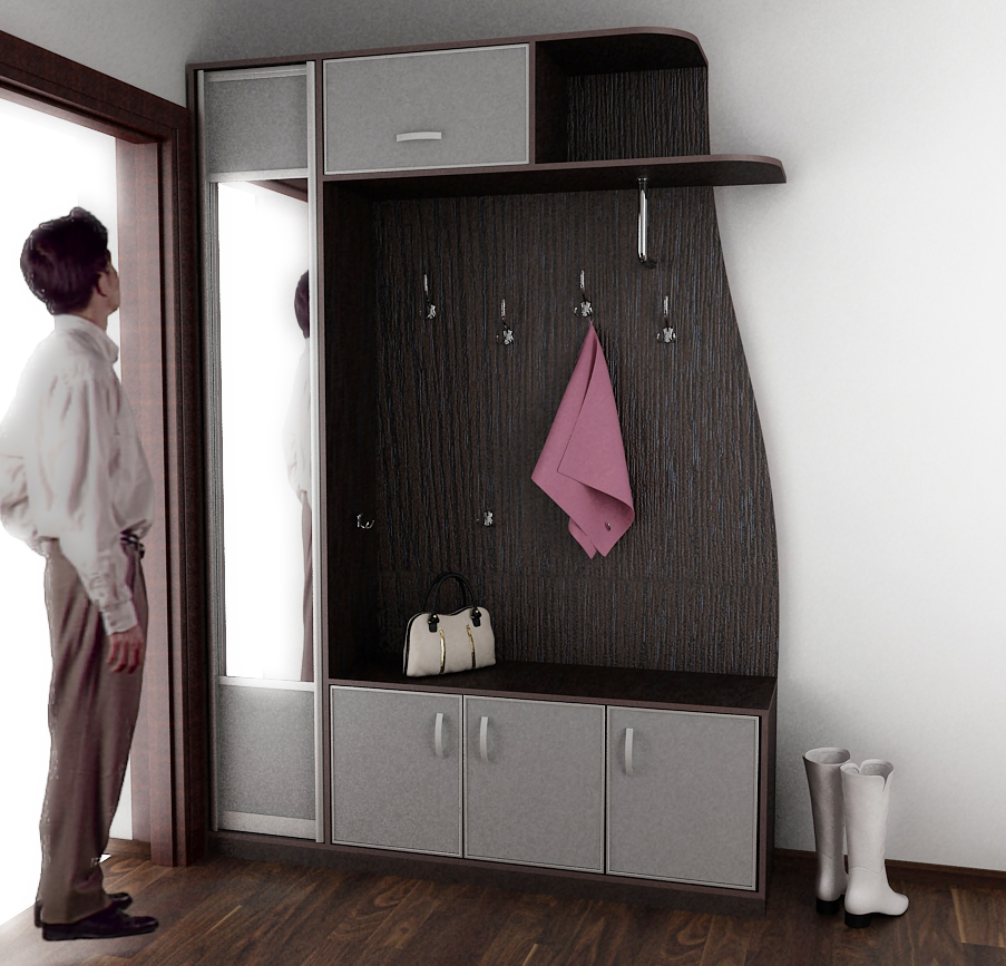 Варианты мебели на заказ более разнообразны. По сути, данная услуга позволяет изготовить любое корпусное изделие необходимого размера и конструкции. Дизайн прихожих, созданных нашими специалистами по индивидуальным проектам, поможет вам познакомиться с интересными решениями. В них применяются встроенные композиции, различные комплектации стационарных шкафов, дополненных тумбами, калошницами, антресолями.